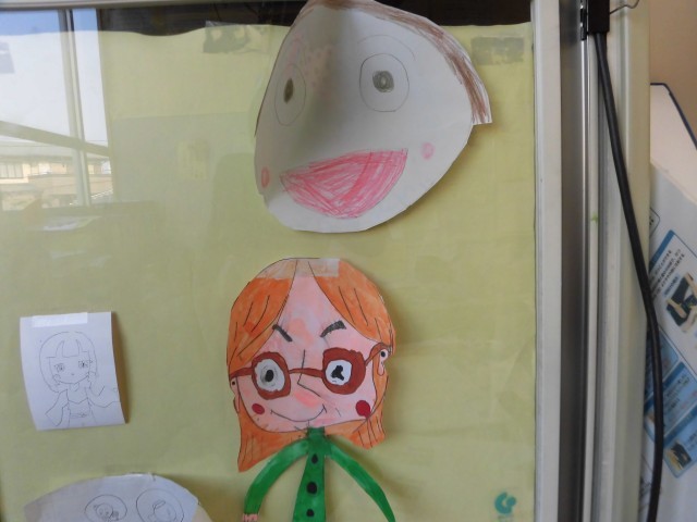 ある子供が描いた担任の先生の似顔絵が貼られていました。