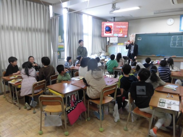 3年生の外国語活動では、最後の外国語活動だったようで、楽しいゲームの真っ最中でした。