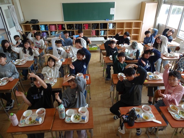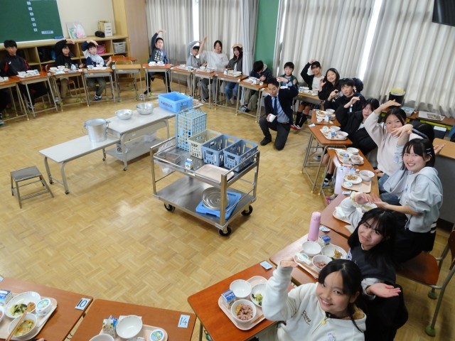 どのクラスも今日はお残しゼロ♪6年間おいしくいただいた給食を味わいながら食べていました。
