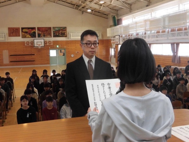 司会進行も、証書授与も、呼びかけも、歌も、記念品贈呈も、すべて子どもたちの手で進められました。