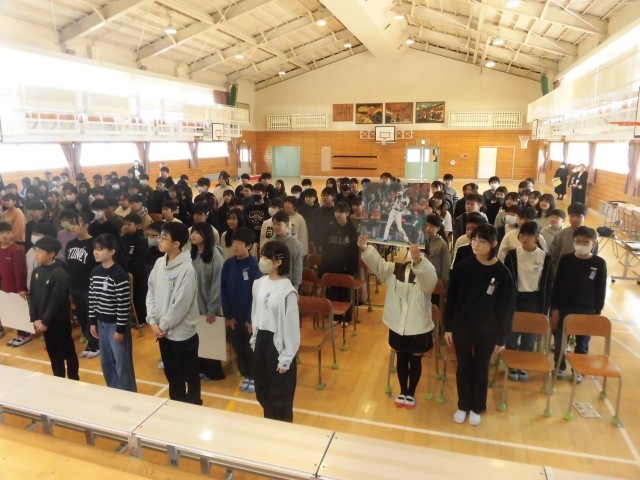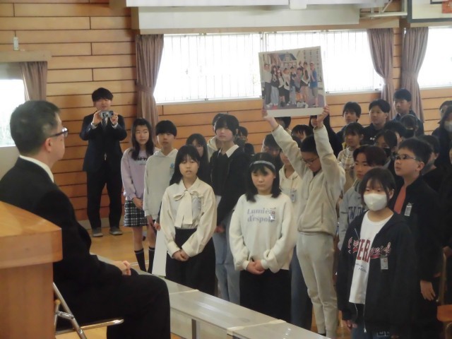 子どもたちは、大利小の校長として5年間勤められた黒澤校長に対して「感謝」の思いを届けていました。