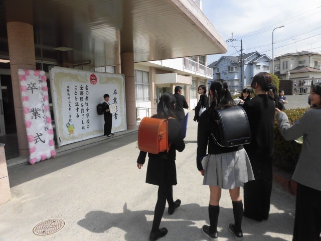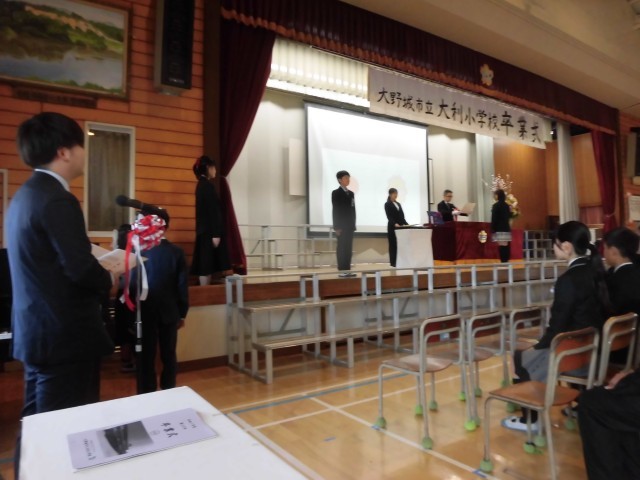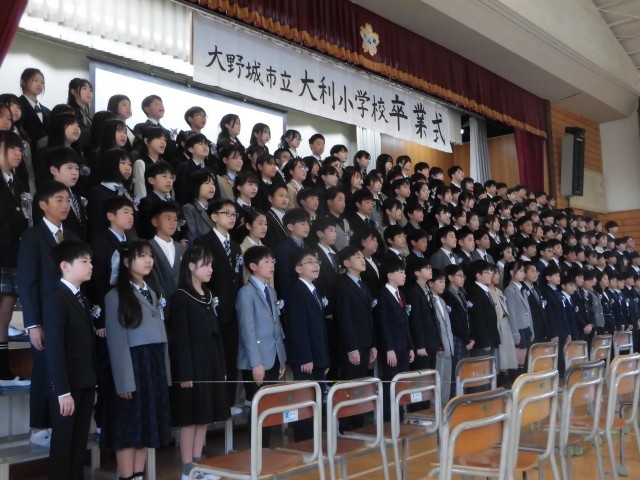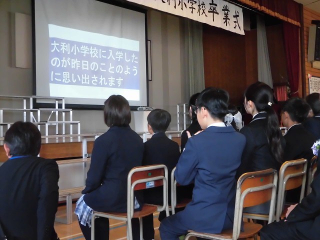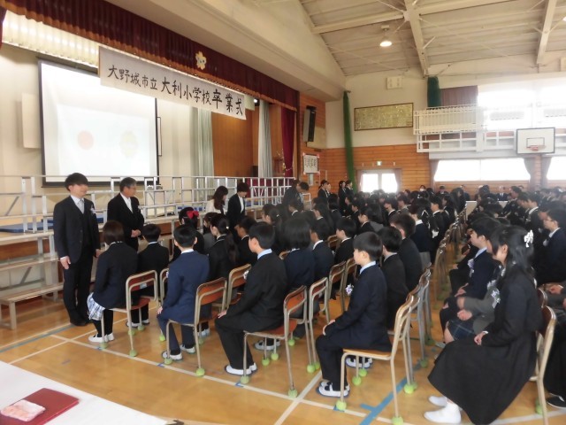多くの保護者の方においでいただき、164名の6年生が本日、ここ大利小を巣立っていきました。