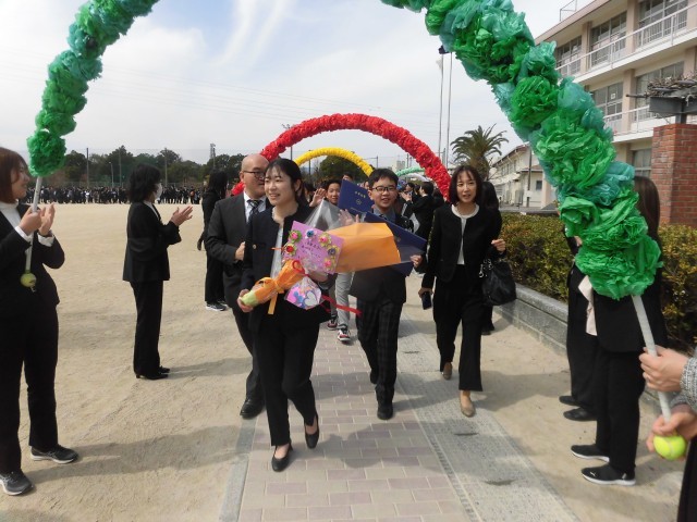 式後、各クラスでの楽しいひと時を過ごし、50周年式典で作製した「ロードトゥー大利」を通りながら花のアーチをくぐりました。
