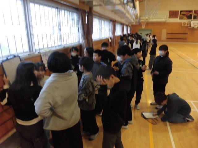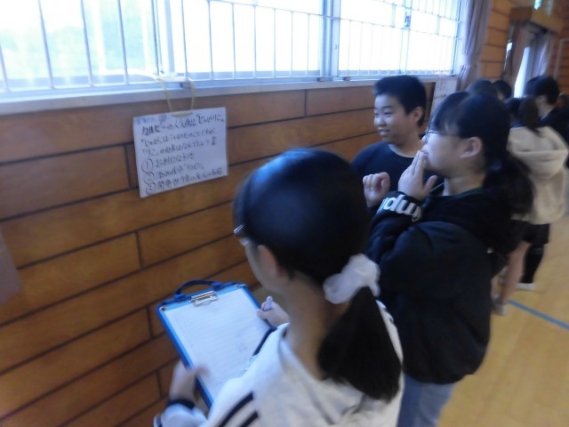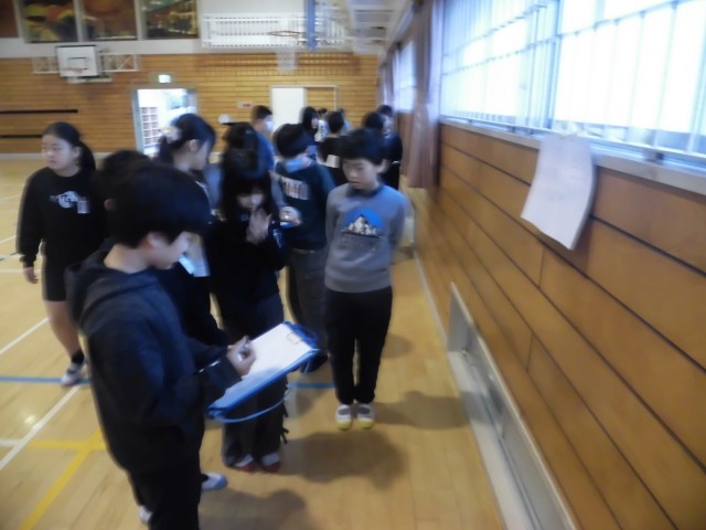 5年生が1時間目から体育館に集まって、学年集会を開いていました。