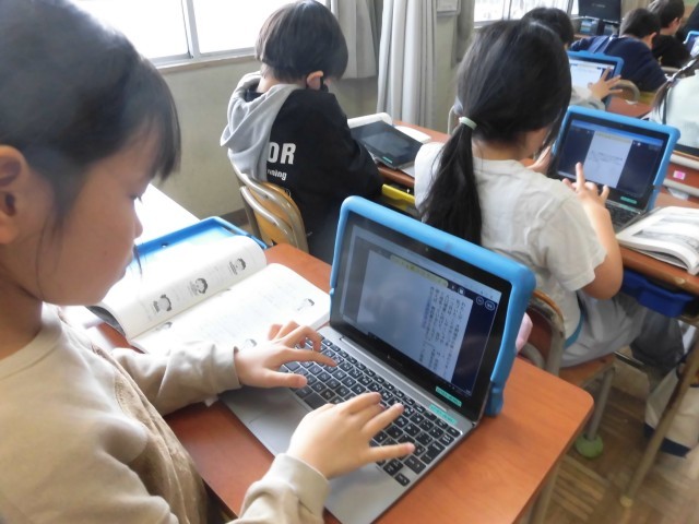 今回は、これまで調べてきた内容を、タブレットを活用してまとめているようでした。