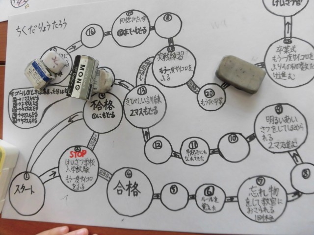 各自それぞれ手作りのすごろくを作っているようで、それをみんなで楽しんでいるのです。
