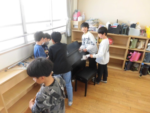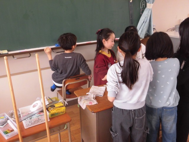 そんな4年生のクラスをのぞくと、1年間お世話になった教室の大掃除を行っていました。