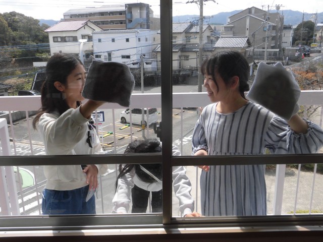 扉の上やくぼみ、黒板の裏側、窓の汚れ…普段掃除しないような場所まで丁寧に掃除をしていました。