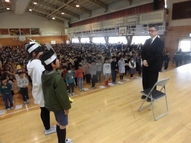 修了式を終えた、体育館で、「校長のサプライズ修了式」を行いました。