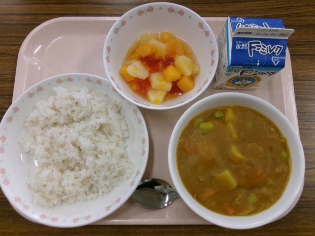 ポークカレー(麦ごはん) 牛乳 フルーツミックス