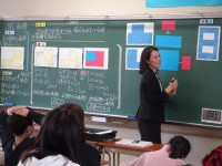 4年生の外国語活動では、「What time is it?」を学習しています。5組では、妹川先生とALTのクリフトン先生が楽しく指導しています。子ども達は、ネイティブな発音を聞きながら、クイズ形式の学習を楽しく学んでいました。