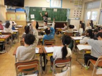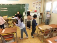 ある先生は自己紹介を兼ねた「クイズ」をしたり、また、ある先生はクラスの協力で数字をあてる「ゲーム」をしたり、またまたあるクラスでは学校が大切にしている3つの宝の合い言葉「あ・そ・べ(あいさつ・そうじ・べんきょう)」を使って話をしたり・・・と、先生方が趣向を凝らした学級開きをしていました。