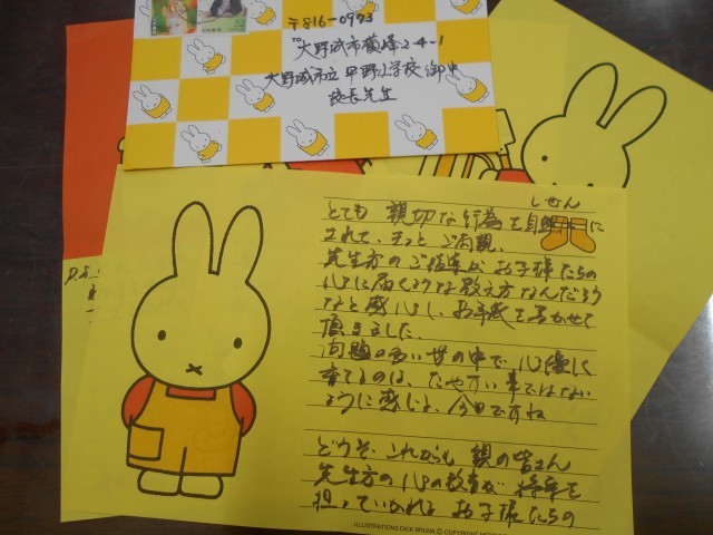 地域の方からお便りが届きました。その方がドアを開けられなくて困っていたら、男の子が、「どうしましたか」と声をかけドアを開けてくれたそうです。その行動がうれしかったことや、そんな優しい子どもを育まれている親御さんや学校の先生たちのことをたくさんほめてくださるお手紙でした。今日は、テレビ放送でも紹介しました。地域の方に、温かく見守られ、ほめていただき、健やかに成長しているひらのっこたち・・・。感謝の気持ちでいっぱいです。