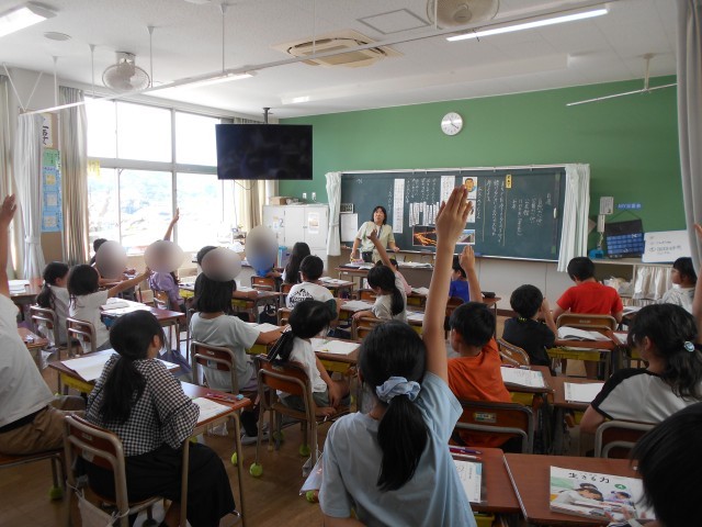まっすぐに手を挙げて、自分の考えを発表しようと意欲的に取り組んでいます。