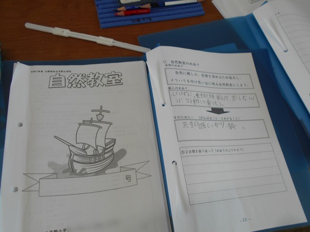 いよいよ来週に迫った自然教室にむけて、しおりづくりがありました。しっかりと自分の目標をたてています。