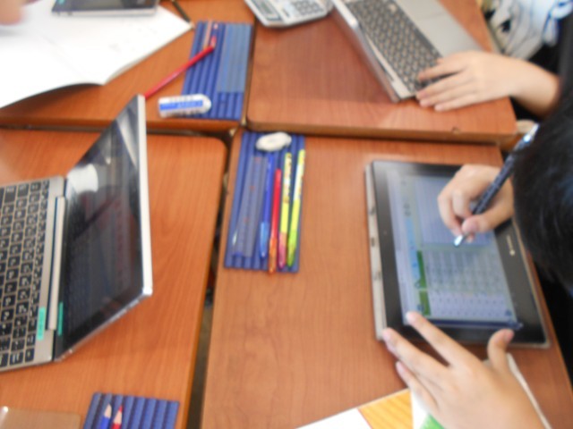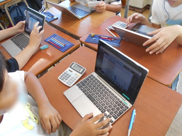 表とグラフの学習を、タブレットを活用して、グループ学習をしていました。しっかりと使いこなしていてすごいです。