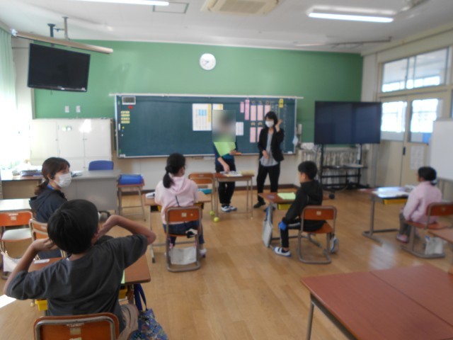 国語でスリーヒントクイズを作り、問題を出し合う学習をしていました。果物や動物などテーマに合わせてヒントを考えました。