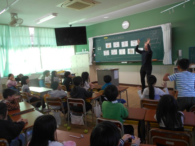 ニコラス先生と、動物の鳴き声ソングを身振り手振りをつけて歌って楽しみました。