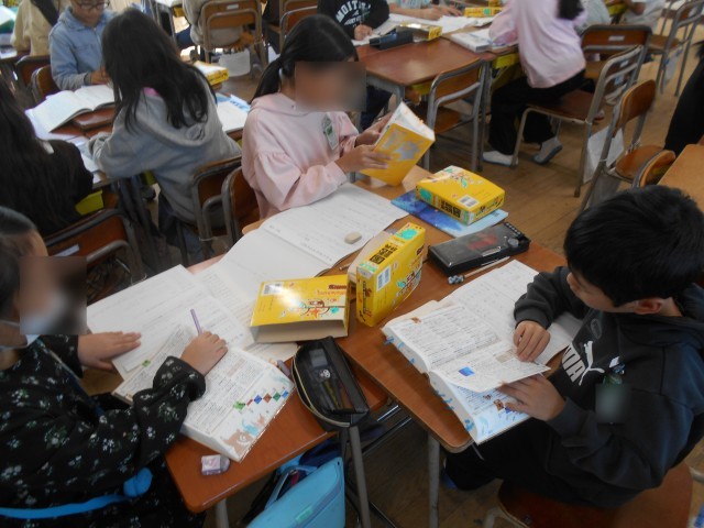 言葉の意味を調べていました。意味がいくつもある中、一番最適だと思う意味を自分で考えましょうという先生の話が印象的でした。