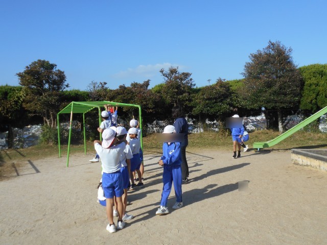 遊具場をつかって、サーキットトレーニング風に運動していました。