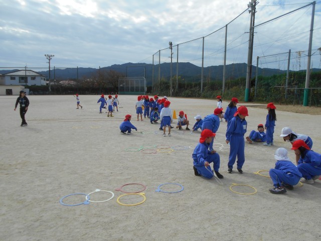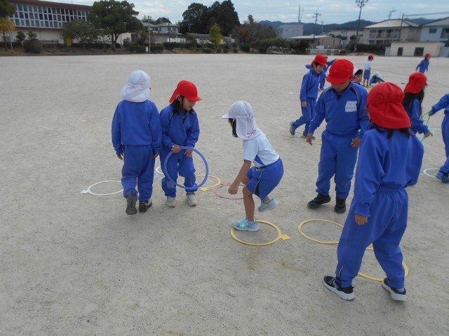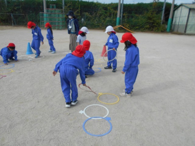 輪をどのように置くのか、グループで話し合って位置を決めています。試しては変え、お互いに折り合いをつけながら学習していました。熱心な姿が見られました。