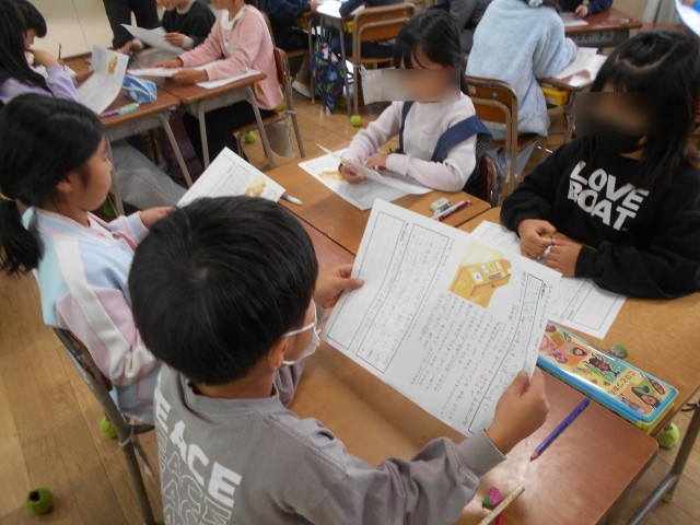 なぜ宇宙飛行士になりたいと思ったのか考えて、グループで自分の考えを交流しました。しっかりと書いたり読んだりすることができています。