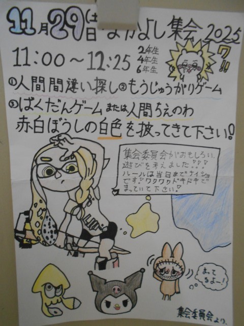 集会委員会が企画している児童集会のポスターです。たくさん楽しんでほしいと思います。