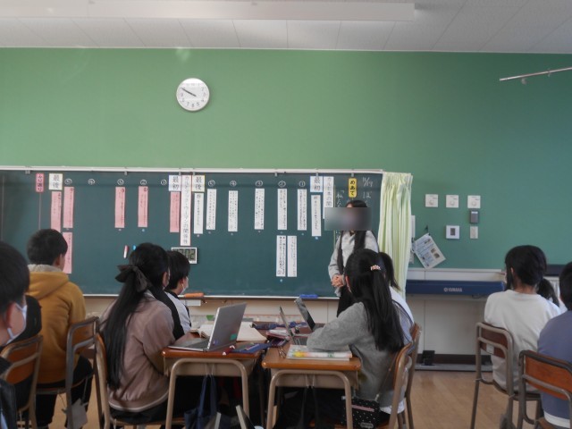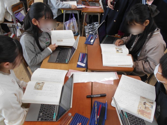 「ブックウーマン」の物語の変化について、みんなで根拠を探して交流していました。しっかりと自分の考えを伝えることができていました。