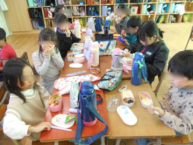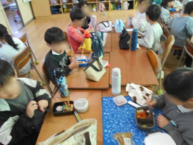 「先生見て~自分で作ったよ」、「自分でつめたよ~」など、笑顔いっぱいのお弁当の時間になりました。朝早くから、保護者の皆様にはご協力いただきまして、ありがとうございました。