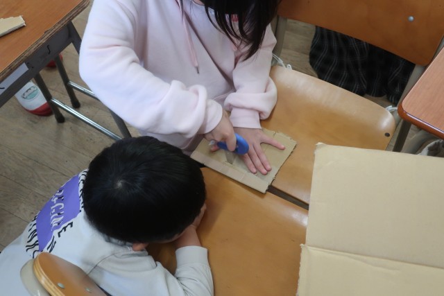 3年生 図画工作~ダンボールを切る「クミクミックス」~