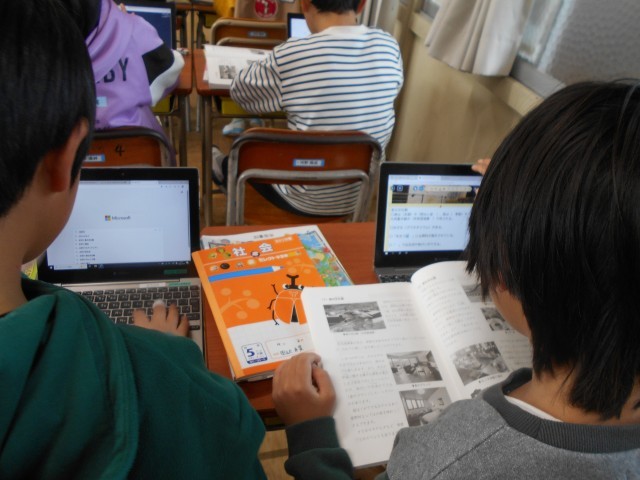 星野村の施設について、インターネットで調べていました。社会科見学が待ち遠しい様子です。