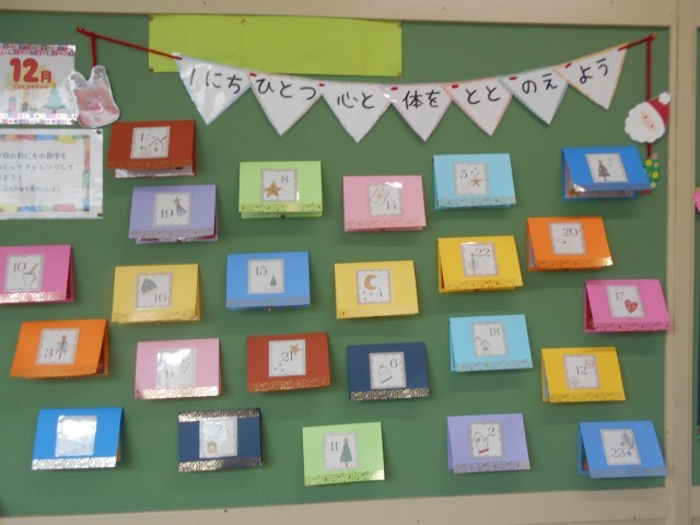 いつも季節に合わせて、素敵な掲示がされてあります。一年生が毎日トイレに行くたびに、めくって楽しんでいます。