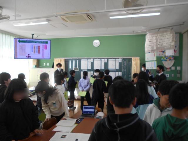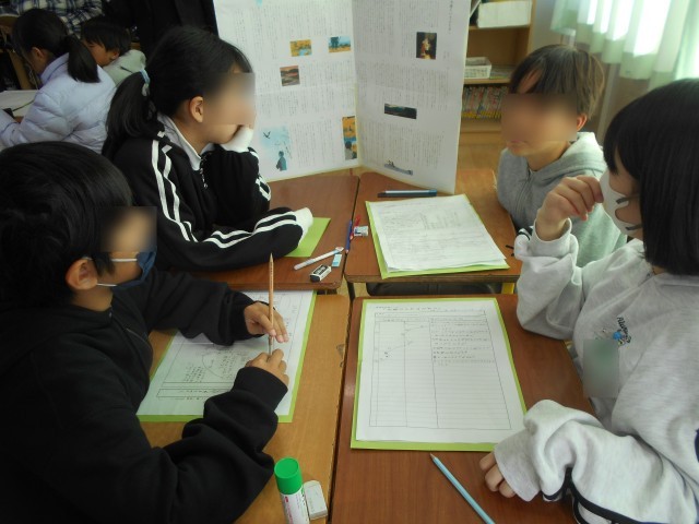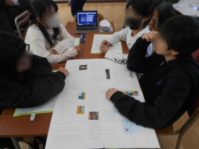 大造じいさんとガンの学習をしています。問いについて、考えを交流しています。