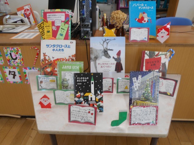 クリスマスに関連する本や、ツリー等の飾りがあり、気分がわくわくする図書室になっています。