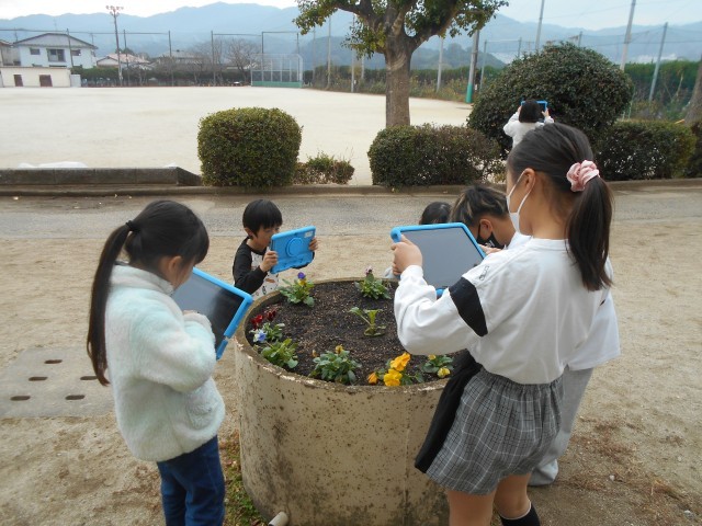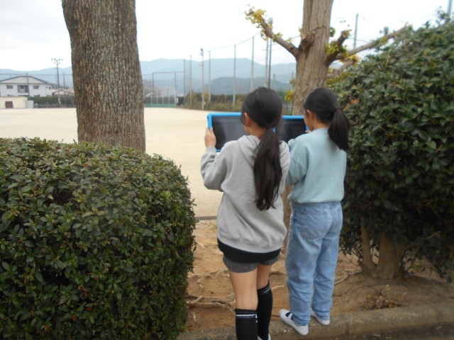 冬の草花等をたくさん見つけて、タブレットで写真をとっていました。小さな草花が一生懸命にいきていることに気づいてくれたようです。