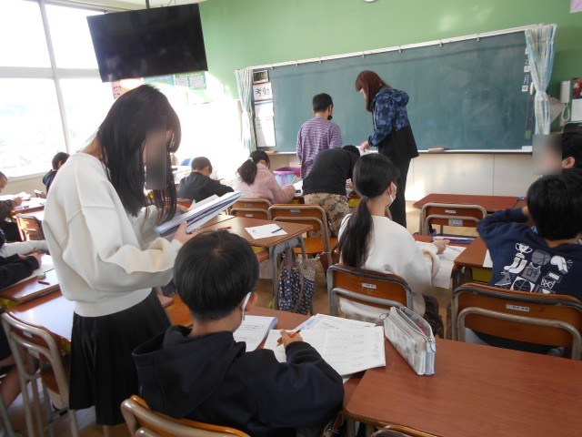 算数の復習をしていました。自分でわからないことを聴いたり、友達に教えたりして学ぶ姿が見られます。
