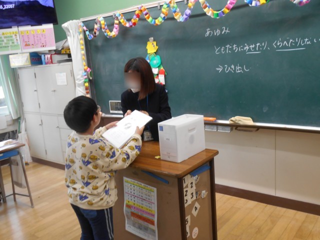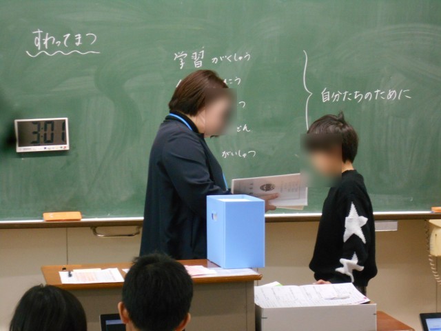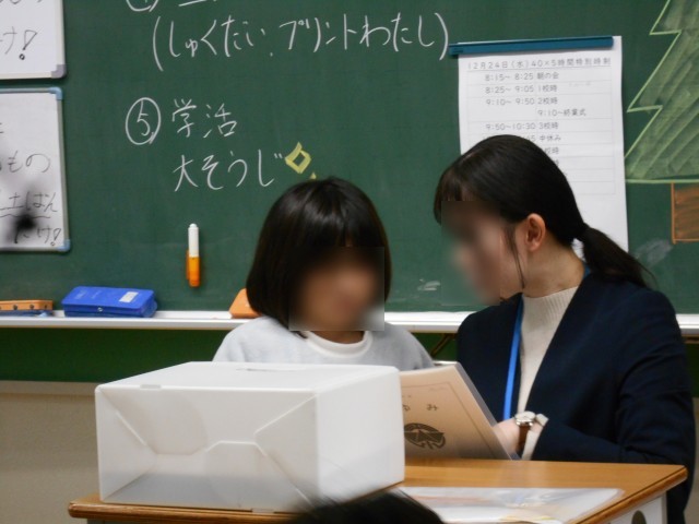 各担任が、一人一人声をかけて、2学期の頑張りや3学期に取り組むことを伝えました。2学期、しっかり学び成長した子どもたちをぜひ