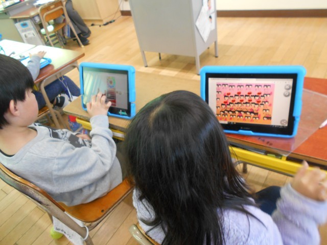 ICTの先生に習ったことを使って、プログラミンングを活用したイラストを作成していました。画面を押すと、あたりがでてきたり、イラストが変わったりしていました。2年生がこんなことができるのかと正直驚きました!子どもの能力ってすごいですね。