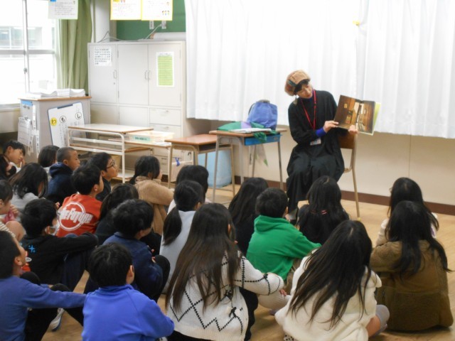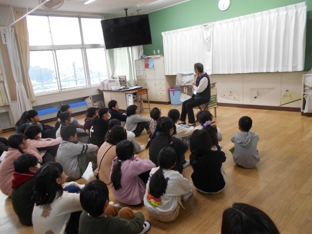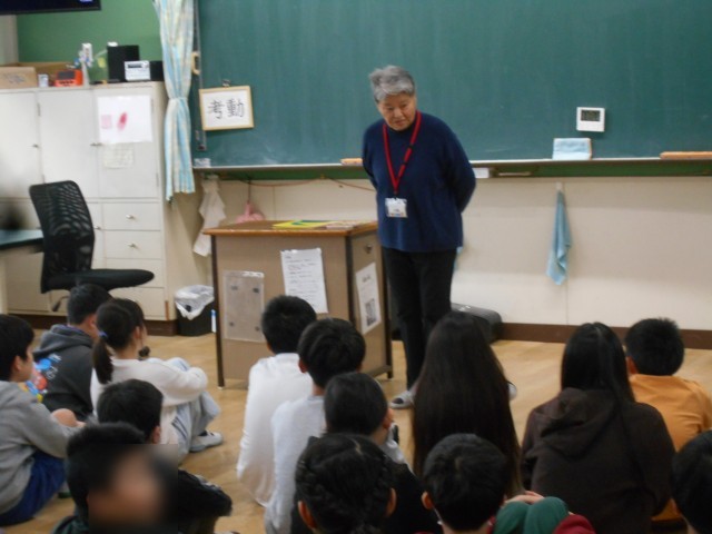 朝の全校一斉読み聞かせがありました。保護者だけではなく、地域の方にもきていただいています。季節にあった話や語りをしていただきました。幸せな時間です。