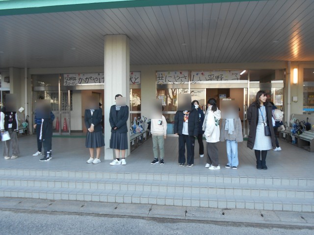 学期に一度、平野中学校ブロックで挨拶運動を行っています。平野中学校の生徒会から4名来てくれました。子どもたちも、元気いっぱいに挨拶を返していました。