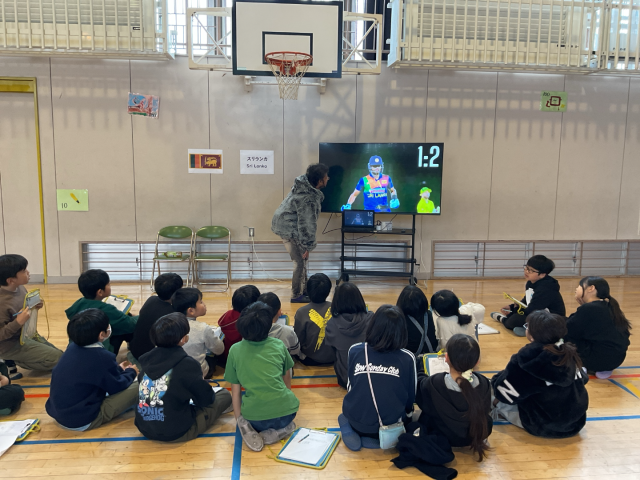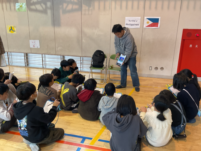 外国の方をお招きして、その国の遊びや学校生活の様子などを教えていただきました。子どもたちは、その国のお金を実際に触ったり、遊びを体験したりと異文化にふれることができました。
