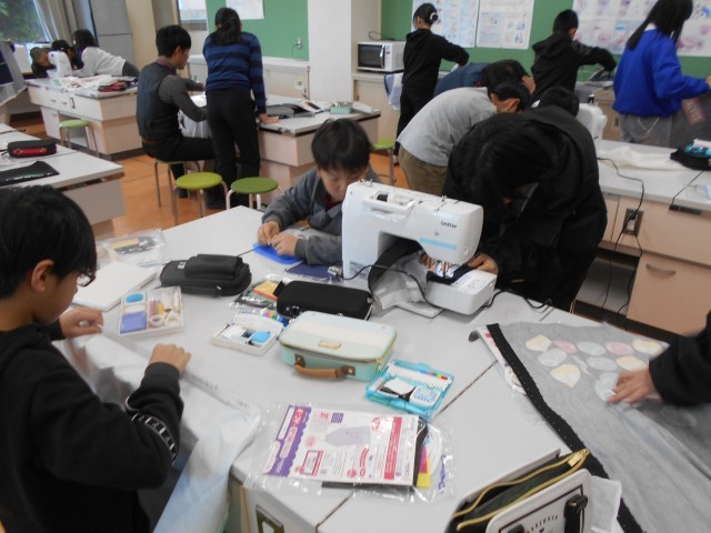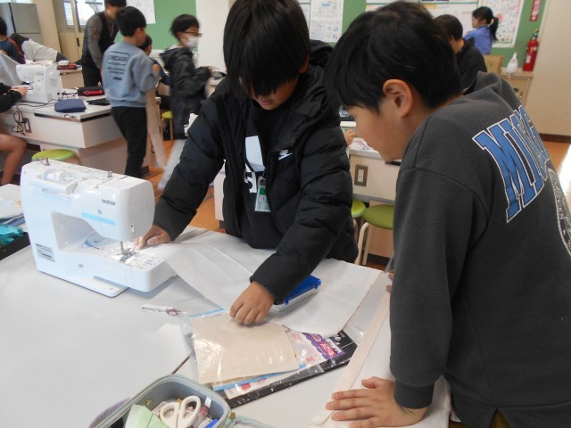 ミシンやアイロンを使って、エプロンを製作していました。友達と協力してする姿が素敵です。