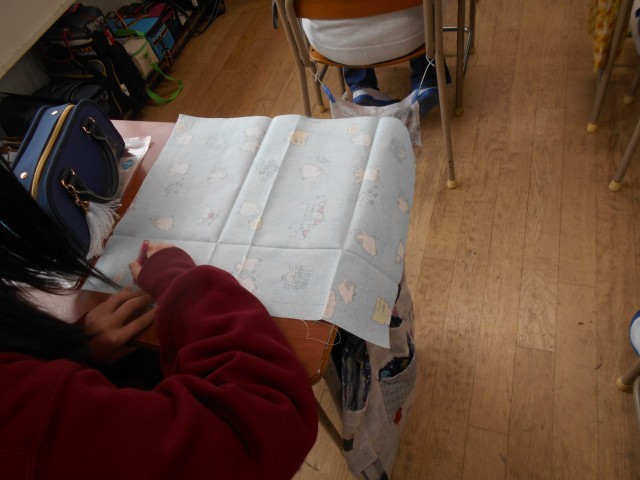 家族への感謝の気持ちを込めて、テッシュケースを作製しています。仕上がりが楽しみです。