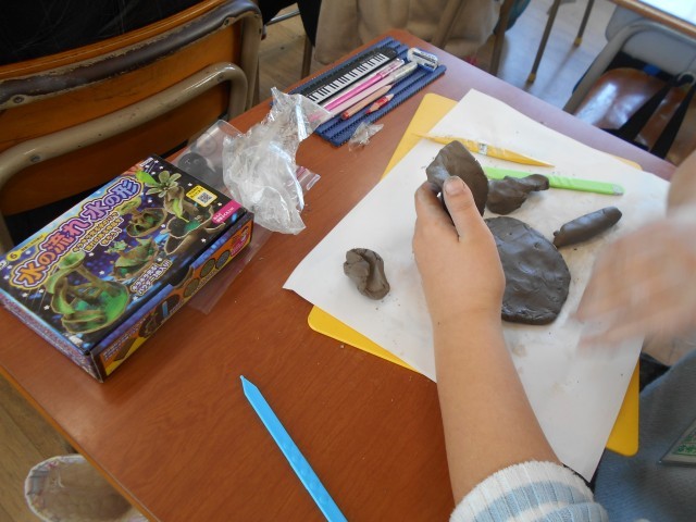 「水の流れ・水の形」を粘土で表現していました。自分のイメージになるように、一生懸命に製作していました。