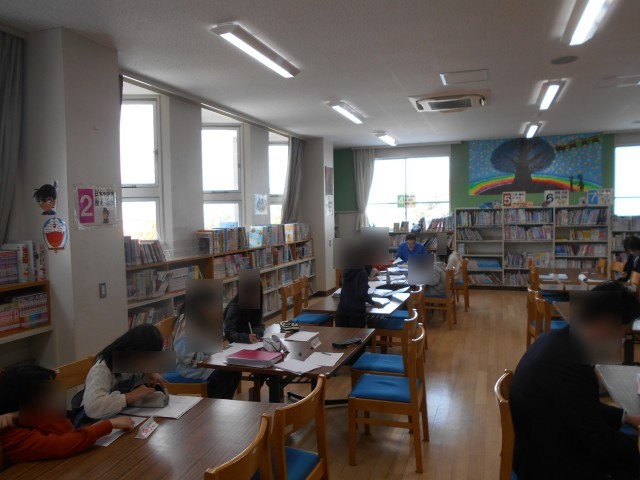 算数をもうちょっとがんばりたい子どもたちが、週に2回給食の準備時間に集まってぷち勉強会をしています。もくもくと計算に取り組んでいます。