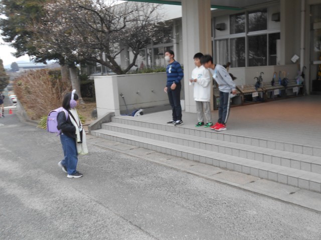 朝、昇降口にたって、挨拶が上手な人に、挨拶名人のシールを渡しています。元気なおはようございますが響く平野小を目指します。