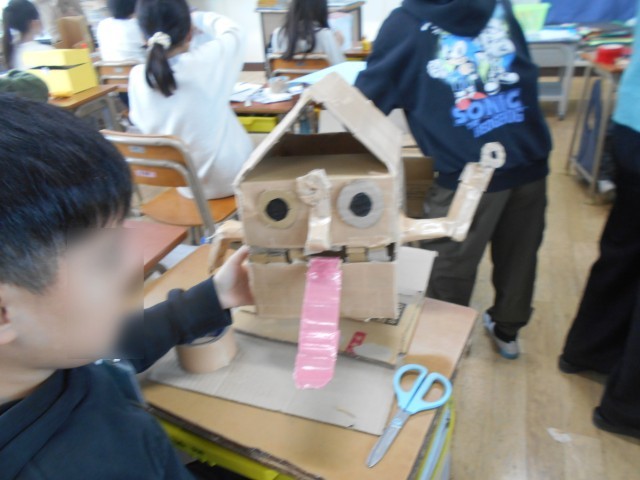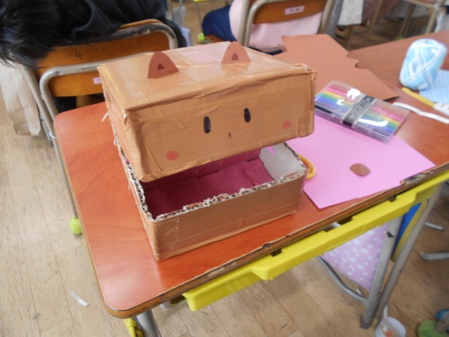 空き箱を利用して、素敵な作品を作っていました。子どもたちのアイデアって想像豊かで面白いです。