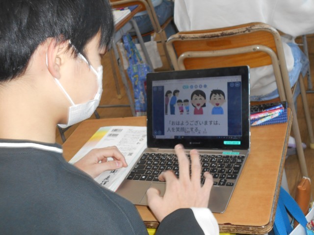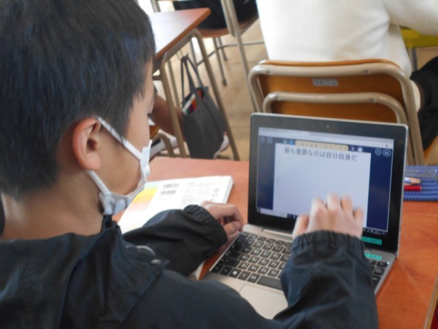 大切にしたい言葉を紹介するために、プレゼンを作製していました。キーワードやイラストなど、より自分の思いが伝わるような工夫をしていました。