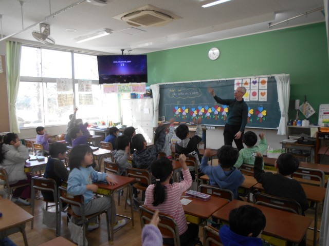 ニコラス先生と、色や形の英語を使って楽しく学習しました。