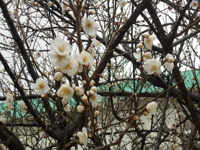 昇降口の横の梅の木に白い花が開き出しました。一歩一歩春が近づいています。